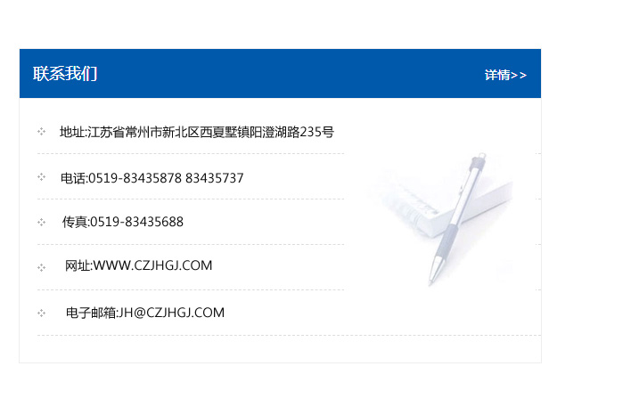 傳真:0519-83435688    郵編:213135    網址:WWW.czjhgj_com.bjbeishengweiye.com    電子郵箱:JH@czjhgj_com.bjbeishengweiye.com